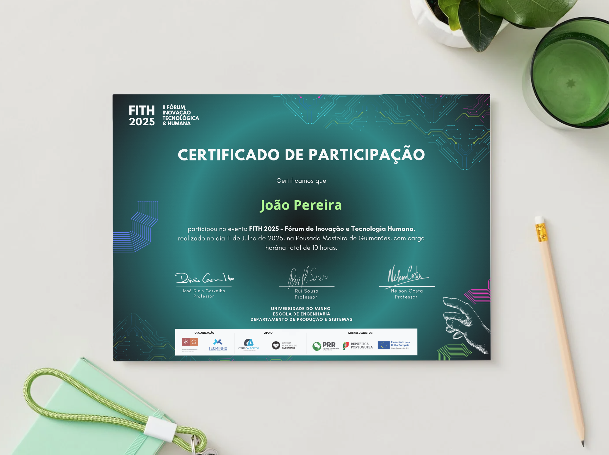 In 2025, Colaborati once again contributed to the Forum on Innovation, Technology and Humanity (FITH) by designing the visual identity of the event — an initiative organized by the Department of Production and Systems at the School of Engineering, University of Minho.